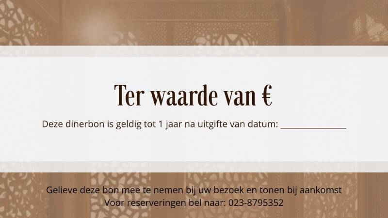 Verras je vrienden of familie met de rijke smaken van het Midden-Oosten. Met een dinerbon van Restaurant Arabesque geef je meer dan een diner, je geeft een beleving